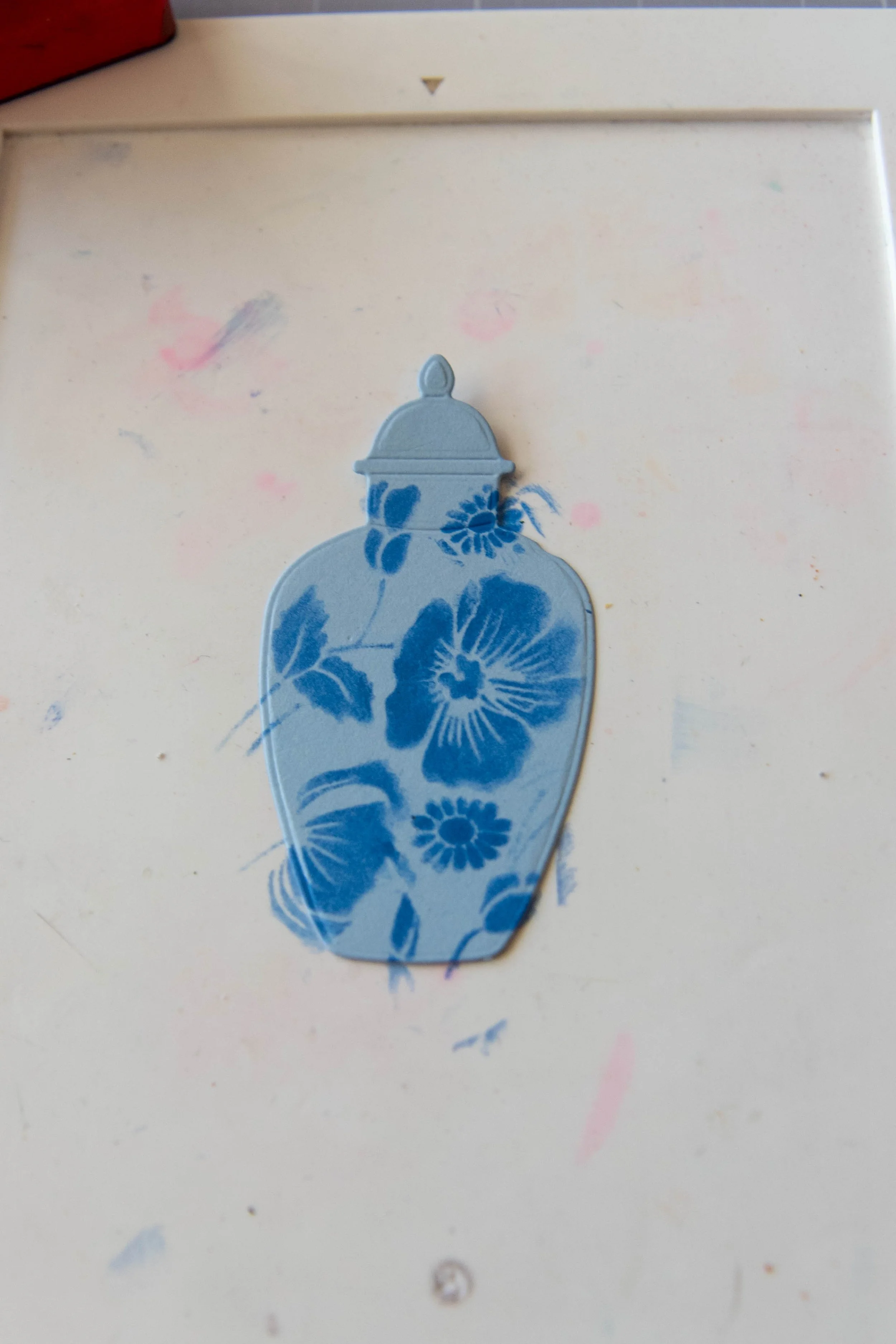 “Ginger Jar”, bundle (stamp, die, and stencil) set by Honey Bee Stamps; all three jars